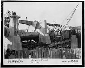 Product Description : Size: 8 x 10 Print57. VIEW SHOWING ROLLER GATE 12 BEING ERECTED. Photograph No. 3911. September 6, 1938 - Upper Mississippi River Nine-Foot Channel Project, Lock & Dam No. 25, Cap au Gris, Lincoln County, MO